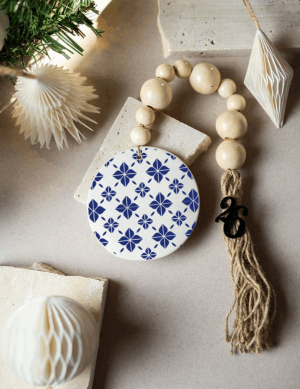 Κεραμικό Χειροποίητο Γούρι Μπλέ Λουλούδια