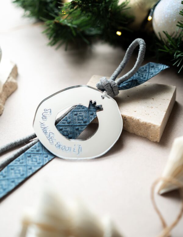 Κρεμαστό Γούρι Ρόδι | Χρυσό Ασημί Plexiglass (Μπλέ)